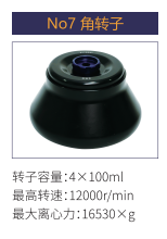 | No7 | 角轉(zhuǎn)子 | 4x100ml | 12000r/min | 16530xg |